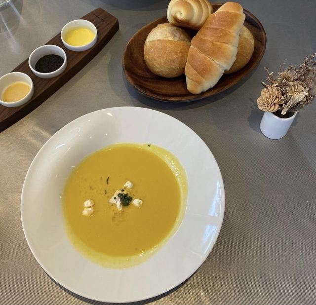 頗有口碑的席楽 氛围舒适 餐点精致 都让人感受到法式的优雅与讲究 手工面包兩款 除了酥脆扎实的软法 还有奶油咸香的可颂 搭配三款抹酱 黃油 油封蒜泥 鯷魚橄榄酱 香气爆棚 南瓜浓汤色泽温润 綿密細緻 令人惊艳 鲜虾沙拉松露清爽美味 主餐小肋排肉质软嫩 舒芙蕾表面香脆 内部则宛如棉花糖般细致蓬松 服务贴心到位 每换一道菜 便重新安排餐具 服務生说明如何搭配佐料食用 法式服务品质到位 值得推荐~