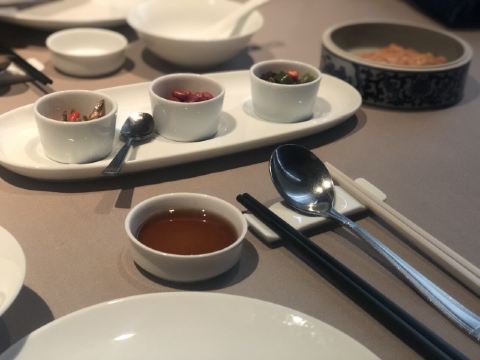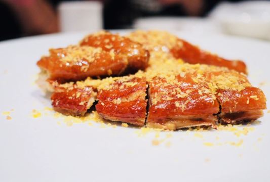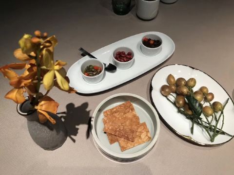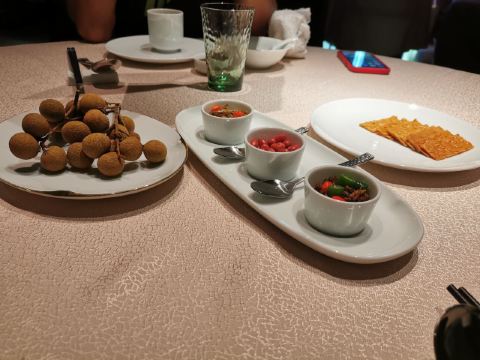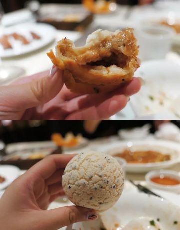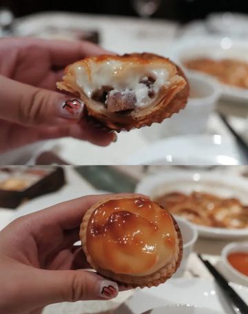 轻轻的一个蚊「玫瑰五谷包」 名副其实第一名非它莫属~台州的点心做得真的超赞!五谷包表皮是酥的有奶香但不甜腻~内陷带着淡淡玫瑰味和一些五谷杂粮口感并不粗糙~吃一个刚好趁热还会流心哦。 「沙蒜烧豆面」 从小吃到大的豆面没想到是他们家十大名菜之一~沙蒜是台州的一种小海鲜味道鲜美营养价值很高,小份的豆面沙蒜寥寥无几,真的蛮可怜,性价比的确是不高,好在豆面味道很鲜是它原始的味道。 「原味仔排」 黑猪猪肉做得仔排的确营养价值很高~不过黑猪肉肉质比较紧吃起来反而有些柴不是我爱的,梅干菜和仔排一起做味道很香,似乎梅干菜更加优秀~ 「和牛挞」 和牛也能做点心的确特别!挞底会有些油但是一口咬下还是觉得很满足~沙拉酱多了些会有些腻但是跟和牛粒却是很搭,一定要尝试哦。