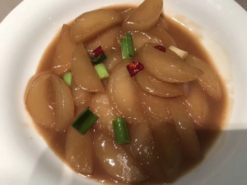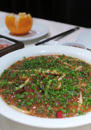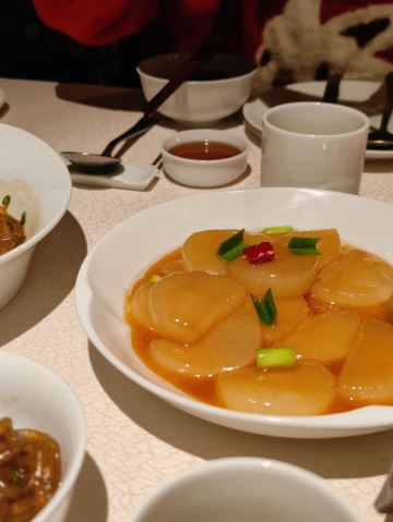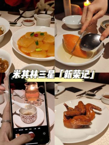 ASPD阿琳来到台州,怎能不试试开一家火一家的新荣记!! 位置一座难求,好友提前一周才定到两个座儿 服务细腻又不会过多打扰 总能够在恰当的时候上前倒茶、分面、撤餐盘 整体是很舒服的体验 |沙蒜烧豆面^ 这是来前最期待的,在无锡尝过类似的菜品 面劲道极了,配着鲜香的汤汁 真的忍不住连吃几碗 |脆皮妙龄鸽^ 绝了,酥皮香脆,满口爆汁…… 乳鸽肉质嫩嫩的,不论是腿肉还是翅膀都很有嚼劲 |家烧萝卜片^ 看了几篇褒贬不一的笔记还是决定点了试下 当然最主要的原因是得吃点蔬菜 头几片喜欢,再来几口腻了 最后几口觉得还是好吃 萝卜软烂,像吃鲜嫩的豆腐 |蜜汁红薯^ 看其他食客的返图,貌似有的店会帮忙切块 我打卡的这家店只是帮忙切了一道 两个人用勺子分食,十分狼狈 红薯本身的甜美配上盘底的糖浆 真的是,甜过糖霜 然而冷掉后便会觉得非常腻味 |鸡头米桂花炖^ 相比红薯,我认为这道鸡头米更出彩 甜而不腻,满口回甘 鸡头米应当也是妙龄 个人建议如果是胃口不大的朋友也可以两人分食 🛣️新荣记(中心大道店) 📍椒江区经济开发区中心大道411号 🕰️10:00-22:00 💰人均: 280/人