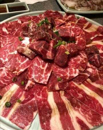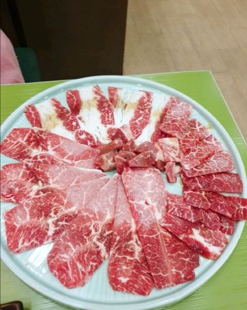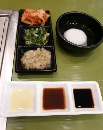日式烤肉店,里面的牛肉品种很多,要了一个牛肉拼盘,那个块状的牛肉比较的好吃,配上韩国的泡菜也可以,就是泡菜不是特别正宗。