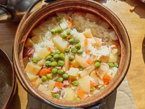 铜锅饭,黄焖鸡,啤酒鸭,鸡杂,红苕颠,烤鲫鱼,小菜汤,洋芋饭,小土豆,北海铜锅饭