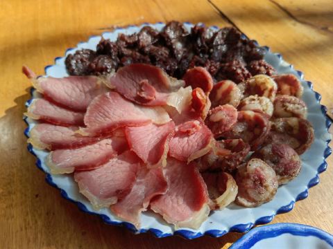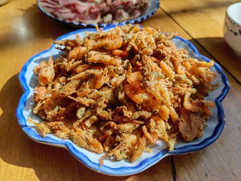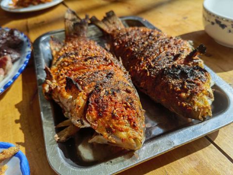 北海湿地公园出来,不到五分钟车程的一个农村,村里都是农家乐,选了一家比较安静,环境比较整洁的,院内面积不小,花草绿植遍布,暖暖阳光下摆了不少餐桌。点了招牌的铜锅饭和烤鲫鱼外加若干小菜,坐在阳光下,喝点茶,品一顿悠闲的农家菜,休息好了再上回程路。