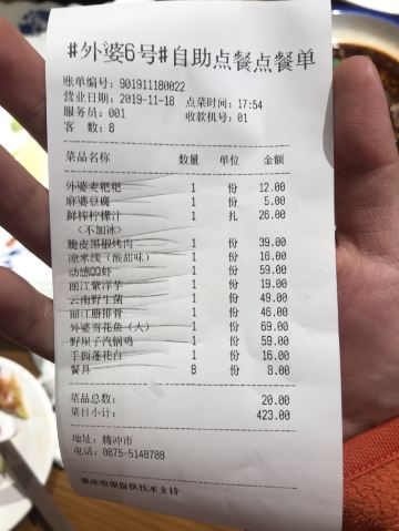在腾冲的最后一顿晚饭,车子还了以后就打算市中心吃一顿,感觉腾冲就这一个财富广场。 我们8个人给了包房,没想到他们家在云南有48家分店,昆明,大理,丽江,特冲,瑞丽,弥勒,玉溪,保山,楚雄,曲靖… 基本上把他们家的招牌菜都点了一轮。 「外婆雪花鱼」没有一根骨头,如果吃到鱼骨头可以要求免单,雪花鱼很嫩,量超级大,味道很好。 「动感QQ虾」直接生虾上菜,虾壳已经去掉了,通过锅仔持续加热,平时倒是没吃到过。只要变了颜色就能吃了,虾仁果然很Q。 「野坝子汽锅鸡」朋友说没有大理的那家有鸡的味道,我喝下来还可以吧,鸡肉都是选的乌骨鸡。 「麻婆豆腐」性价比很高,3块钱拌个饭老好吃了 「云南野生菌」选的菌子应该是比较普通的,不过味道还蛮鲜美。 「滇味凉米线」米线酸酸甜甜,还蛮对我们口味。 总的来说点的几个菜味道都还不错,最后一桌也吃的差不多了,还好没有多点。 办了他们家的会员卡抵扣掉了点折扣,性价比还是蛮好的,比较实惠的连锁店。