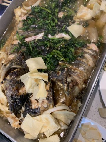 朋友聚会选择水游城离着谁都比较近,思前想后决定去吃烤鱼,搜索到鱼酷水游城三楼紧挨着阿香米线,店内人气满满,门外还有等座的。这天气很适合烤鱼,朋友不能吃辣选了十三香味道的,鱼肉滑嫩十三香非常入味。配菜选了海带藕片宽粉豆皮大家都很喜欢。主食必然是饼哦,要了两份太好吃了。小酥肉上的慢催了好几次,也许不是最擅长的所以上的慢吧。服务满意,干净卫生,环境温馨。