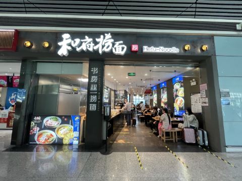 天津的滨海机场, 过了安检🛂口之后, 往登机口方向就会看到和府捞面的店铺, 很醒目。 一晚热气腾腾的捞面, 可以缓解一下旅途的疲劳。