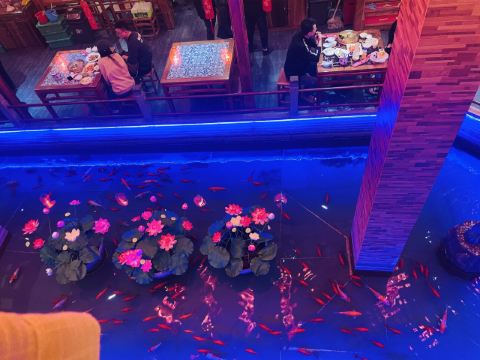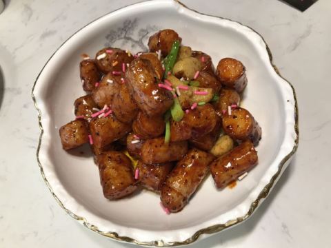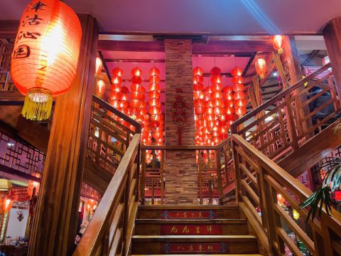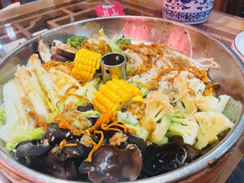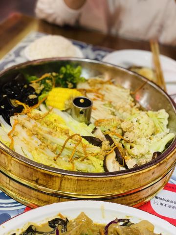 开了很多年,就在临街商铺店面很大,布置古色古香,还有集市,各种菜品显示售卖很有意思,卖了武大郎烧饼,酥脆好吃。团购价格非常实惠,三道菜两个人吃刚刚好。鳕鱼球酸甜好吃,肉很实在。渝香翠竹菌微辣开胃,蒸汽时蔬很健康,上菜很快,用餐体验很好。