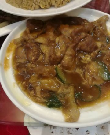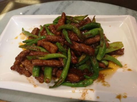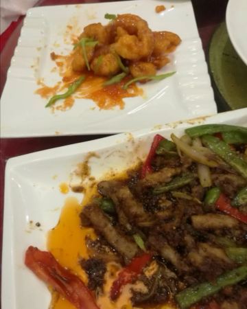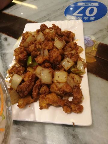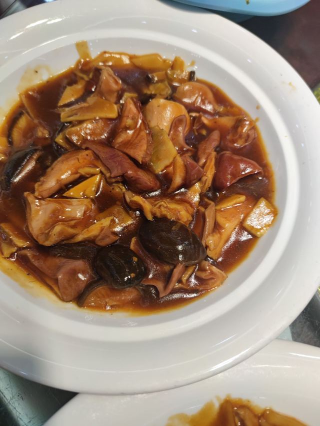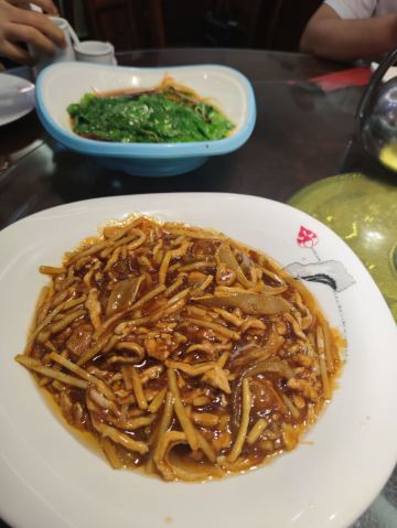 八珍豆腐,老式做法,胡椒味很浓,味道不错。三丝,味道很实在。黑椒牛柳,肉实在。独面筋,味道很不错。虾仁,个头不小,很q弹。蔬菜炒的火候也不错。