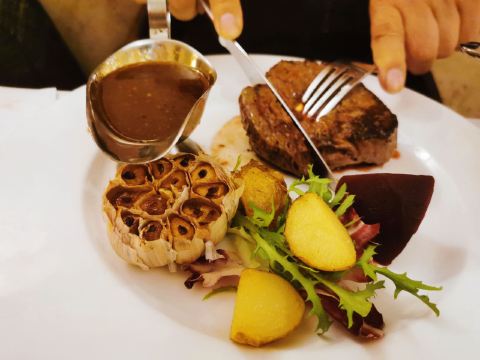 老派的西餐厅,主营俄国菜和法国菜。乳白色的木质餐椅和窗台,碎花桌布,欧洲风情十足,罐焖牛肉是头牌,汤料够厚,牛肉软嫩适中,咬劲十足,非常值得一试。