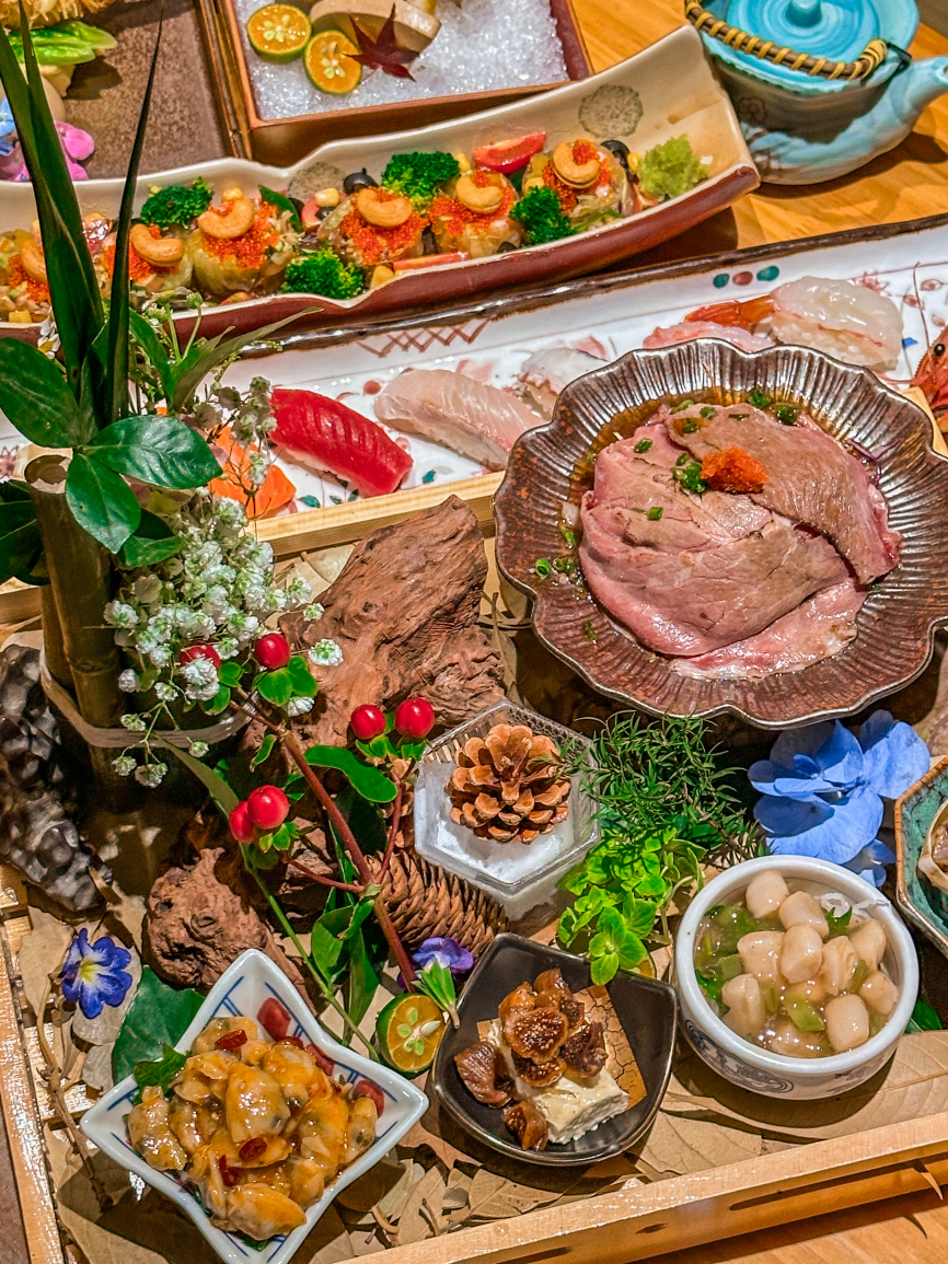特选脆皮鳗鱼,三文鱼刺身,海胆,照烧鸡肉饭,烤串,龙虾沙拉,草莓鹅肝,醋鸡皮,极品牛舌,银鳕鱼西京烧