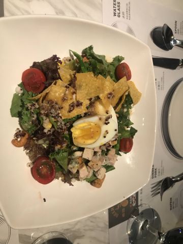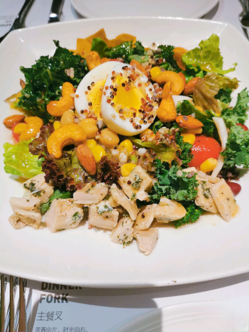 jrw小丸子mm这家西餐厅在我心中的地位一直不可动摇,最近发现在公司不远的万科开了一家分店,甚是欢喜。 |罗勒鲜虾面包塔^餐前来到开胃菜,罗勒酱包裹在去壳的虾肉之上很鲜,面包烤的脆脆的,还有淡淡的咸味。 |土耳其烤鸡&烤土豆配时令鲜果蔬^鸡肉烤的外焦里嫩,土豆块外皮焦甜,内里绵软醇香。脆嫩的黄瓜花,微熟的菠萝切块,让吃草也同样快乐。 |轻煎去皮红鲷鱼^ 红鲷鱼肉质较薄,轻煎保证外形完整不散,肉质紧实肥美。 |谷物藜麦芒果牛肉焗饭^带着水果香气的清新焗饭,吃起来不会腻,藜麦口感很Q。口感层次丰富,颠覆以往主食的概念。 |夜明珠冰淇淋慕斯^很美的一款甜品,白巧克力外壳淋上热巧克力酱,慢慢融化的外壳,香草冰淇淋满满浮现,舀下一勺,热巧冰淇淋混合在一起,体验冰火两重天的口感。 |儿童特制拿铁^这款热饮最惊喜的是喝到最后是红豆和可可混合在一起的,苦中一点甜,超sweet!