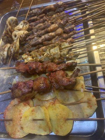 在土城也是开了很久的一家传统烤串店了,店里装修不错,每桌都有独立的烤炉,抽风机,非常不错,点餐很快的,各种烤串,砂锅系列,基本上一次性上齐了,放在炉子上自己在烤烤,辣椒面孜然自己也可以在加,味道不错,价格实惠