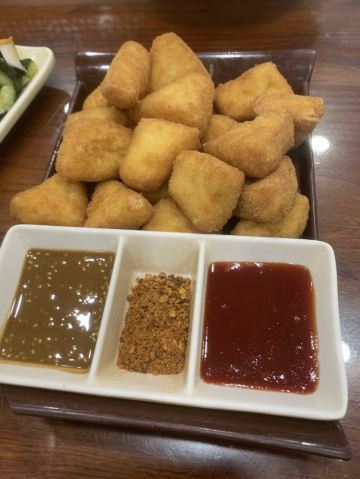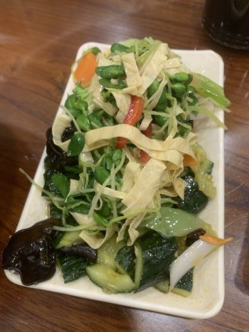 炸豆腐,葱油饼,干煸鱿鱼须,美玲拉面,炸鸡排,酱爆洋白菜,八珍豆腐,水爆肚,拉面,酸梅汤,美玲小酥肉,素丸子,宫保鸡丁,凉菜拼盘