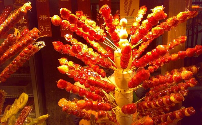 大糖粘子,四十出口酒,年糕糖堆,红果糖堆,现做现买粽子,熟梨糕,山楂酪,大红果糖粘子,山楂片,炒红果,京糕,山药豆