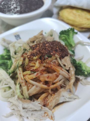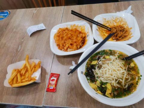椒盐鸡,麻酱凉皮,麻辣米线,骨肉相连,金汤酸菜肥肠米线,酸辣粉,薯条,至珍鲜虾堡,胡辣汤,秦镇大刀米皮,皮蛋瘦肉粥,桂花醪糟黑芝麻汤圆,桂花醪糟花生汤圆,地瓜丸,咖啡,三线米线,秘制凉皮,肉夹馍,南瓜粥,米皮,八宝粥,皮蛋粥,面皮,南洋咖喱饭,香菇滑鸡饭,鸡腿堡
