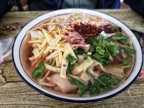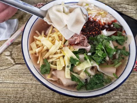 老字号的清真餐厅,被书呆子拉来7鸡丝碎面和扁食 服务还不错 鸡丝碎面第一次7,有点像多年前吃的雀舌面,面的形状非常像了,但是口感比雀舌面好太多,软糯又不是嚼劲,汤底里有胡椒和麻油,微麻微辣都刚刚好,还有香菜提味儿,鸡丝的存在感不强,整体还算对我的路子 相比之下扁食逊色不少,牛肉大葱馅的,找肉和捉鬼一样难,简直了,现点现包,需要等待 鸡丝碎面还是推荐的