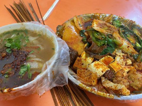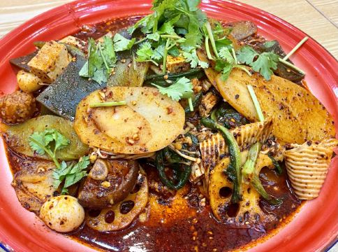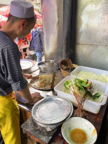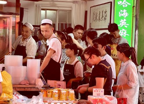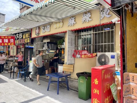 天水的美食、小吃,不计其数,布满大街小巷,而且都很好吃,很有特色,麻辣烫和它们相比,非但没有任何特色,真的还不太好吃。 可是偏偏就是麻辣烫在天水爆火了,火到什么程度呢,旅游旺季的时候,象“哈海英”这种头部网红店,天水的朋友说排五、六个小时很正常。 传说爆火的原因有两个,第一是便宜,以前十元钱就能管饱,但现在肯定不可能了,咱这一盆56元。第二是天水下面有个县叫“甘谷县”,甘谷辣椒质量好,最适合做麻辣烫,但现在的产量也根本不够用,价格也不合适了,据说现在都用的新疆辣椒。 来都来了,还得尝尝,为了不排队,中午过了饭点来的,告知也要排一个小时以上。附近的一个院子里的那家也一样。 其实,这也不需要什么技术含量,只要真材实料,做岀来都差不多吧,再往里走走,最后面的几家,明显人少多了。