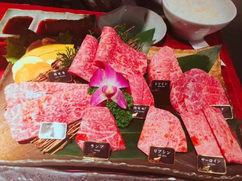 牛舌,黑毛和牛大拼盘,杏仁豆腐,石锅拌饭,寿司,烧肉,冰淇淋,シャンパン,ミスジ,松坂牛,5a西冷,獭祭小瓶气泡清酒,牛一头,黒毛和牛単品,大樽盛 黑毛和牛,牛一頭丸ごと食べ尽くし,人气美食-鸭,蟹沙拉,凯撒沙拉,雪花,扇贝,大虾