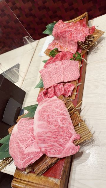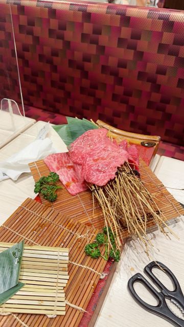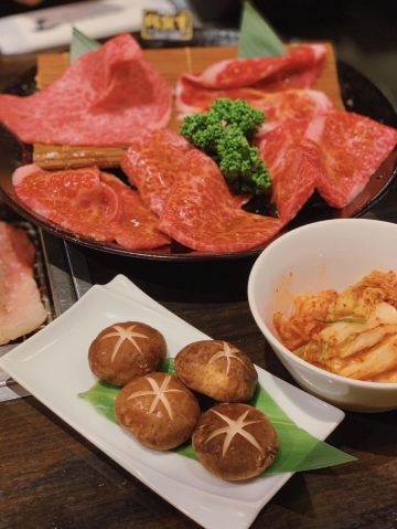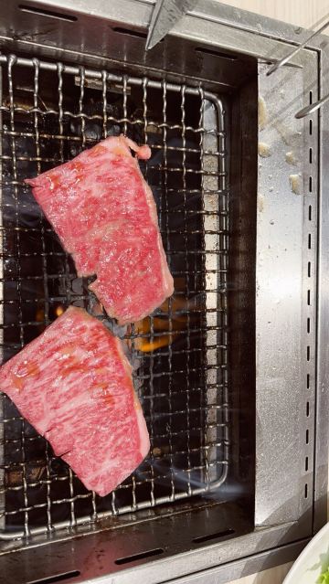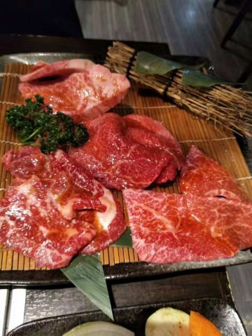 俺的烧肉,去到的时候人也不算特别多!我们6个人点了,松坂牛特选豪块大桶盘(1Kg)19800日元,因为那个服务员说我们会不够吃,所以我们还点了,松坂牛特等五种拼盘(300g),5980日元。但最后我们都觉得其实不需要加后面的拼盘,因为和牛吃多了还是蛮腻的,所以大家可以先不要点那么多,吃到一半真的不够再加! 因为我们点了最贵那个拼盘,所以很尴尬的一件事是店员端上来的时候会敲锣打鼓,然后全店的人都会看过来。 虽然我也分不清拼盘里的肉是什么,但我觉得都是好吃的!和牛纹理清晰,油脂丰富,入口超级嫩,可以说是入口即化了!吃完这顿让我们那几天都不想吃肉了。 然后它规定每个人都需要点一杯喝的,所以我们最后人均花了370人民币,我觉得还是划算的啦!