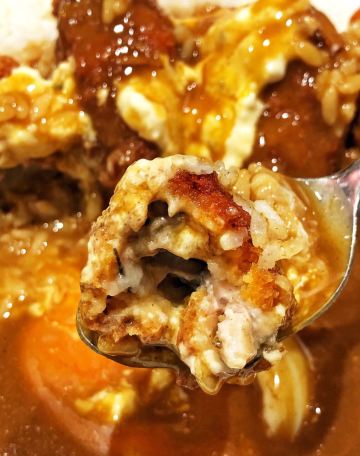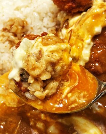 我点了鳕鱼咖喱饭 看到海报上写的期间限定没想就点了必须吃!会先上一份温泉蛋和美乃滋,你可以把他们搅拌在一起用鳕鱼蘸着吃,也可以像我一样做糙汉子直接倒进碗里!