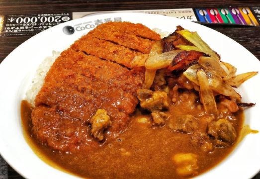旅游度假我点了鳕鱼咖喱饭 看到海报上写的期间限定没想就点了必须吃!会先上一份温泉蛋和美乃滋,你可以把他们搅拌在一起用鳕鱼蘸着吃,也可以像我一样做糙汉子直接倒进碗里!