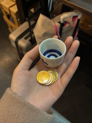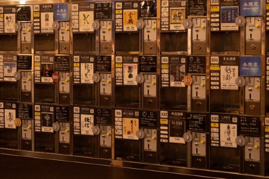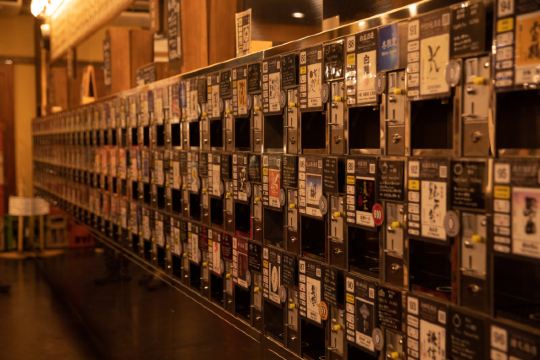 这家投币式小酒馆,出现在各大车站里,一出站就可以看见。 挤挤挨挨的小酒柜,摆满了一整面墙,看上去很是壮观。只要投上一个币(100円),机器就会咔咔咔地把你的小酒盅注满。 “随便喝两杯好了”,我想着。 结果尽是出了新潟就不怎么喝得到的地酒,还有各种冬季限定! “拖着行李也不方便喝太多啊”,我想着。 结果他们专门辟了一块地方放行李箱。 “喝醉了可咋办呢。” 结果一出门就是旅馆的指示牌,只休息三小时醒醒酒还蛮便宜的。 ぽんしゅ館,你过于周到了。