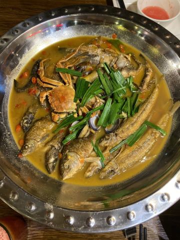 在浙菜排行榜看到的,果然名副其实。幸亏早到一点,进店就坐在在2号桌。大排档风格,照例在厨前点了菜。上菜很快!最好吃的卤鸭卖光了,换了老鸭煲,居然也很惊艳!铁板虾~小虾炖豆腐~清蒸鲈鱼~糖醋排骨~番茄牛腩~笋片丝瓜。