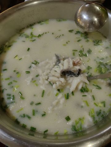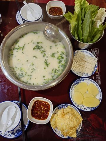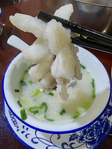 不经意发现的一家餐馆,在铜仁的义乌城,不算起眼的地方,出乎意料的好!他们说的财鱼类似广东的生鱼,片得特别好,汤鲜,锅一开就可以吃,鱼片嫩滑,入口即化的感觉,口味刚刚好不怕咸,蘸的辣椒酱也很香,喜欢!最后的现场拉面很有特色。🌹👍他们家的锅巴也特别好,忘记拍照了。回家就想自己学着做呢!😁😁😁
