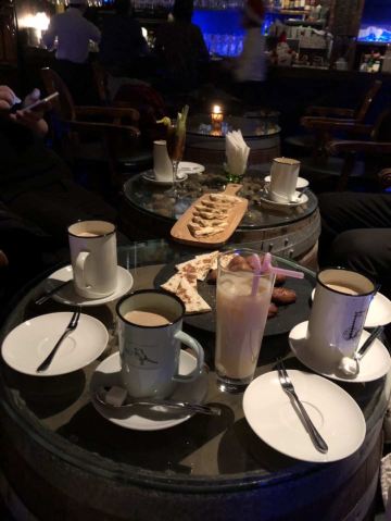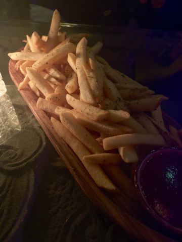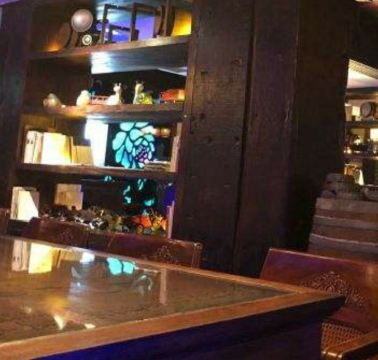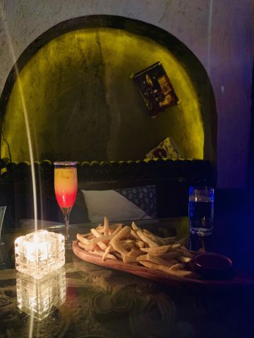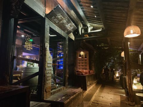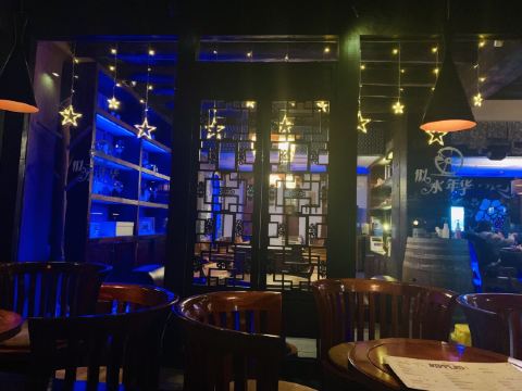 Yolanda_zy听说是网红酒吧,黄老师的店,选择跨年来体验一把。店里环境布置还是非常喜欢,青花瓷和酒瓶元素碰撞,装饰着整个酒吧。晚上灯光比较暗,每一桌互不干扰,互相看不清,静静欣赏欧美乐,同时看看窗外的江南水乡夜景,非常迷人、享受。事先吃了河鲜后再过来小坐的,所以点了杯喝的与网评较高的薯条。薯条太实在了,满满一大份,两个人根本没吃完,但是真心不错,外脆内嫩的,冷了还是脆的,没有软掉。太冷了,点了一杯热奶茶,一杯四分之三的爱[爱心]特别的名字,特别的调味,很不错[强]店估计晚上开得很晚,第二天中午想来吃午饭的,结果关门,以后早些过来,直接用晚餐[调皮]满满享受晚上的欢乐时光