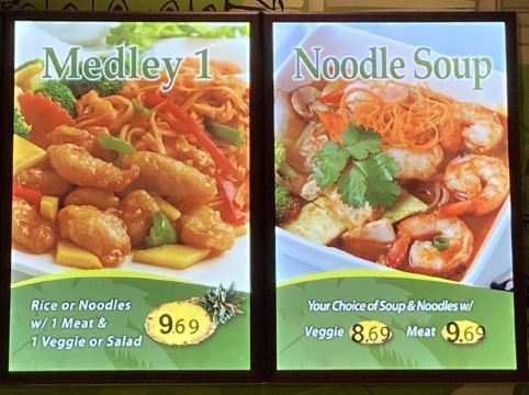地铁North York Centre站上盖,是North York Centre。中心位置有个food court,California Thai就是其中的一家快餐。泰国菜,很多种搭配:沙拉+1个肉10.59刀、米饭或面条+2个肉+蔬菜11.49刀。