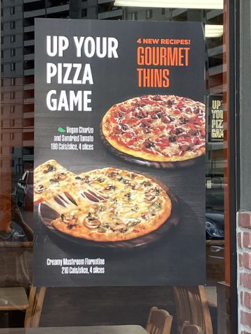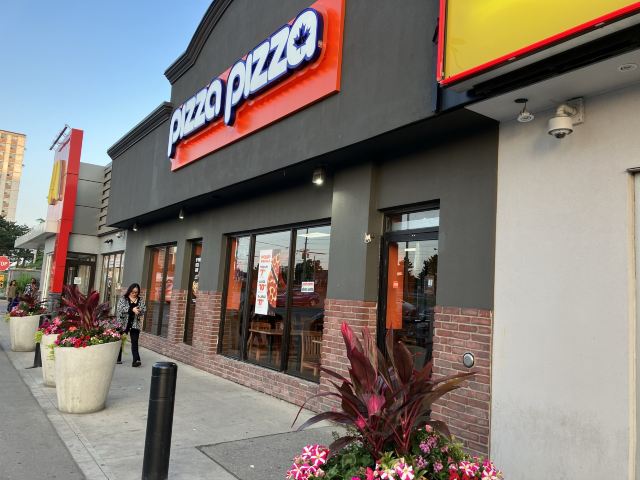 Pizza Pizza在Jane Finch Mall这个购物中心的外围,店门朝向停车场。正推出外卖自取的特价:中号7.99刀、特大号11.99刀。也有新品问世,采用风干的西红柿、以及奶油味的蘑菇。
