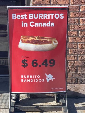 Burrito:墨西哥卷饼;Bandidos:强盗、土匪。Burrito Bandidos的logo,就是个蒙面的西部片大侠形象。声称这里的卷饼全加拿大最好。