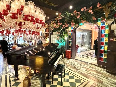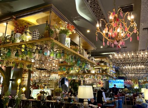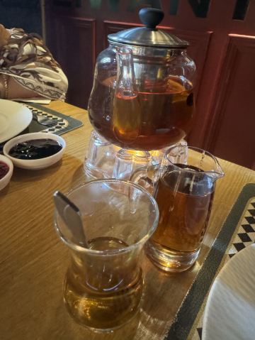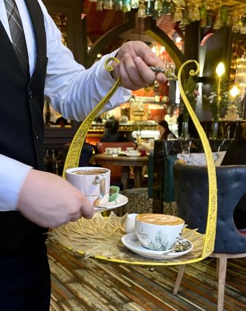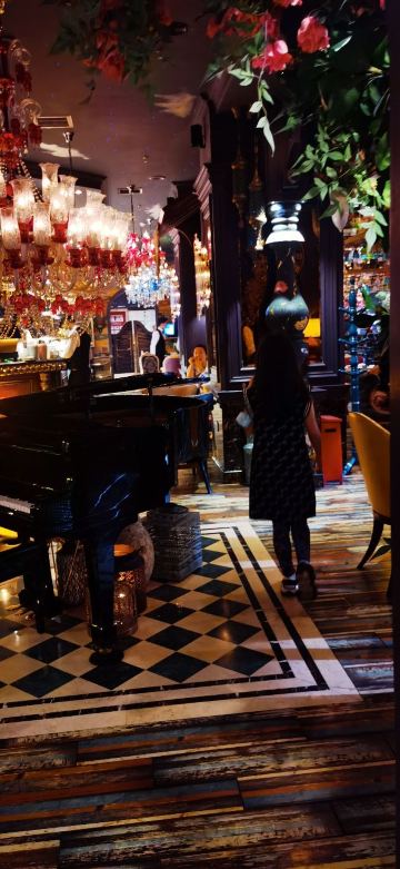 从楼下的门头来看,还真看不出这家咖啡馆的规模会这么大,布置得极具氛围感,富丽堂皇,进门就是一架大钢琴,其实这已经不是一家一般意义上的咖啡馆了,应该是西餐厅和咖啡馆的跨界融合。 由于航班时间还早,过来喝个下午茶,手工烤肠拼盘很赞,由羊肉、牛肉、鸡肉三种组成,肉香浓郁,一道道维吾尔族点心也做得极其地道。 最具魅力的就是他家的服务员,一色的维族帅小伙,制服整齐,腰杆笔挺,彬彬有礼,百问不厌,训练有素,人见人爱。 乌鲁木齐竟有这么好的维族咖啡馆,真是太棒了!