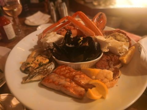 黑蒜烤生蚝,牛排,加拿大大西洋龙虾,T骨牛排,青口贝,薯条,海鲜三明治,Seafood Linguine,珍宝蟹,Dungeness Crab,三文鱼,生蚝