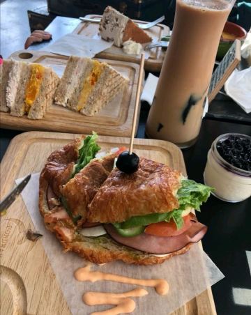 这家咖啡店做的点心味道很不错哦,里面的三明治味道很不错哦,那个可颂火腿的味道也很可以的哦,蓝莓乳酪杯很棒,上面一层蓝莓哦。