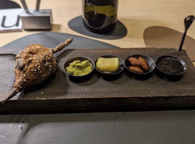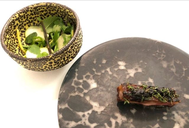 Karpfenspitz,Filet au Karpfen ,Karpfen ala Chinois du Sichuan ,Leberkäsesemme,Sommerrolle,Muscheln,caviar,Backhendl, Apple Tart ,pesto paste, Leek tempura,Lamb encrusted in Szechuan peppercorn.