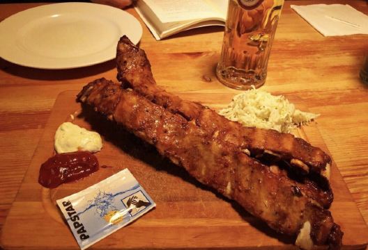 Helen晓世界捷克奥地利这两个邻国的美食,其实有不少相同之处,至少都很爱肉肉,哈哈哈。猪肘、肋排,都是当地人最爱的硬菜。所以在捷克吃过了猪肘,就在奥地利试试肋排吧。 不少美食排行榜都会推荐这家历史悠久的肋排餐厅,而且敢用“维也纳肋排”做店名的,可见底气十足。 不过网红店自然也有傲娇之处,这里没有预定是基本上吃不到的哦,我们第一天就白跑了一趟,只能预定了第二天的座位,终于在上飞机前吃到了心心念念的排名第一的肋排!小小提醒一下,不要只点招牌原味哦,店员推荐的姜汁味和墨西哥味的也都超级棒,而且感觉更加多汁入味。还有鸡翅也绝对是容易被忽略的黑马,另外苹果啤酒也是必点,佐肉最佳伴侣哦。