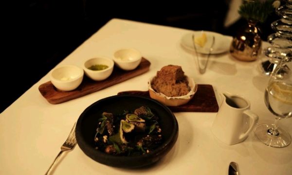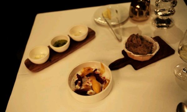 Cold Cucumber with Buttermilk and mint,Rosefish with Watercress and Egg,Tomato with Physalis,Cashews and Coriander,Pigeon Breast,Ravioli with Goat Cheese,Zucchini and Lime,Mascarpone with Charcoal and Lime