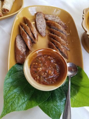 青木瓜沙拉,万象糯米饭 ,烤鸡,老挝春卷,冬阴功汤,Plateau Dégustation,Purple Sticky Rice,Xúc xich,海鲜炒饭,湄公河炸鱼,香兰叶包鸡,烟熏牛肉,舂木瓜 ,烤鱼,万象竹筒饭