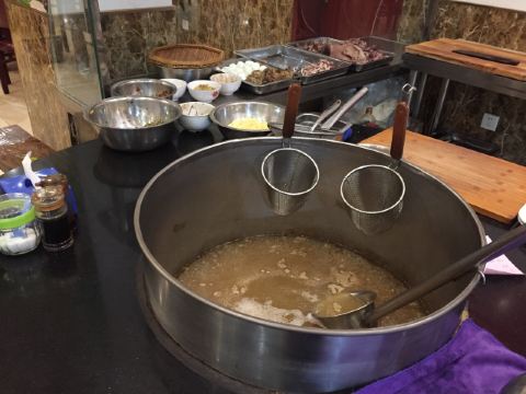 HANBANG来潍坊必须品尝当地特色美食~朝天锅。 从网上搜到这家,据说很正宗。👏🏼👏🏼 【位置】在市中心,根据导航很容易找到。但是,门前停车位不多,而且便道宽度窄,车身长不容易停进去。🚙🚙 【环境】很清新的环境,出乎我的意料。豪放粗犷的饮食方式和食材,怎么会有如此别致的装修。整体感觉干净、明亮、舒适。🌅🌅 【菜品】 🛎芥末鸡:量不大,浓浓的芥末味,鸡丝和配菜比例几乎相同,很有特色, 🛎炸五香肉:味道浓郁,真正的五香味儿,很酥脆。特别适合下酒。🍶🍶 🛎老汤:一大锅不断沸腾的掺有各种猪肉部位的汤,散发着浓浓的肉香。盛上一碗,配上香菜、香葱,点入几滴香醋,别有风味。🫕🫕 🛎正宗朝天锅:刚出锅的大饼,柔软咸香,包裹上猪肉,满足感倍增。 【服务】服务员见我们外地人,不知道如何正确的品尝方式,主动耐心的指导,还详细讲解很多食材细节,好贴心。👩🏻💼👩🏻💼 💐💐💐💐💐 体验感颇好,环境好、够风味、服务佳。 推荐给没来过的朋友,来潍坊必来此。 💐💐💐💐💐