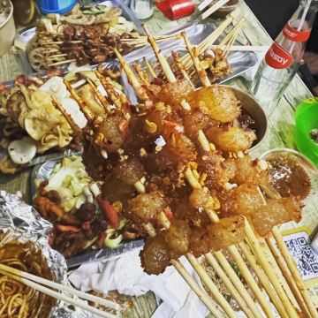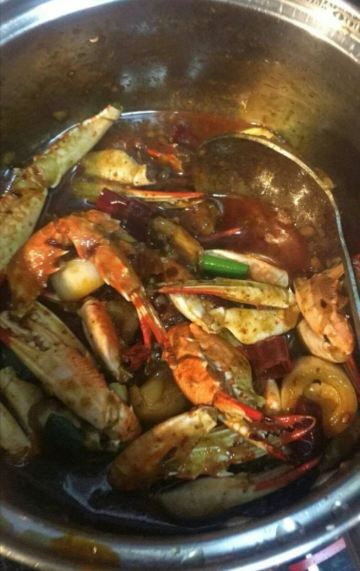 招牌蟹脚面 面很香,很有滋味,比较辣,蟹钳一般,面才是重点,建议一定要尝尝 鬼味辣子肥肠 很辣,很香 原味蘸料 没有辣椒,主要是蘸炸的蔬菜 原味加番茄酱 原味蘸料基础上加了番茄酱 微辣蘸料 原味蘸料里加了辣椒 黄金牛油小串 应该是牛胸口油传的串,一般,有点腥 腰花串串 很好吃,不是嫩的那种,是老的比较有嚼头的 牛肉小串 很好吃牛肉软嫩 知味蒜爆鸡小串 很好吃,蒜的味道也好,吃之前把蒜的皮拔掉 [薄荷]环境: 比较市井 [服务铃]服务: 不好