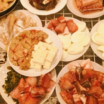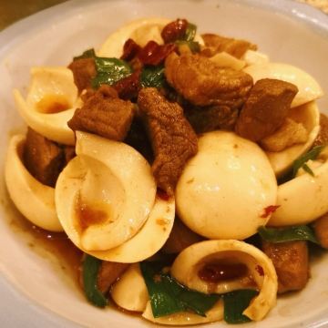 尚德家常菜,有些菜是一做便是二三十年,这儿可以找到上世纪八九十年代的味道,可算武汉家常菜的活化石。 苍蝇小馆子,几张桌椅,明档里,手一指,菜就随便点。 全家福是各种食材的大荟萃,多半是肉与蛋,堪称平民版的佛跳墙。 蛋白烧牛腩,可以好好补充体力,据说运动们超爱蛋白!现在市面上不多见啦! 烧剥皮鱼,是武汉伢童年最爱的美食之一了,肉厚无刺,孩童哪能不爱?据片哥说,小时候父亲做了此菜,他毫无吃相,筷子夹起来就吃个不停。老爸看他一言不发。第二天,继续剥皮鱼。片哥依然饕餮如故。第三四日,再来,片哥晓得了…… 霉干子,则是重口味爱好者的福音。