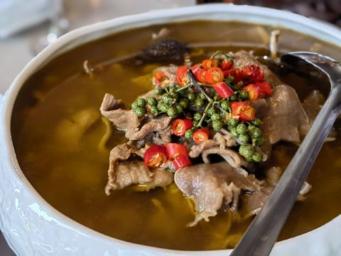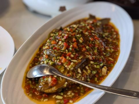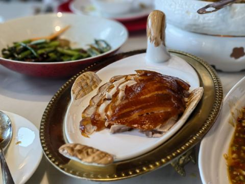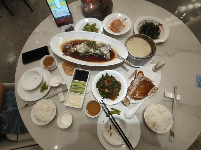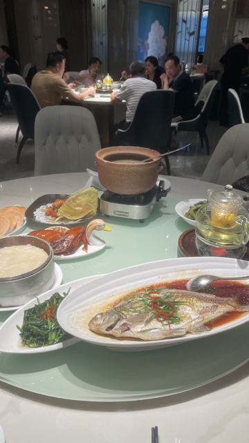 茶香熏鸭舌,鲍鱼红烧肉,湖锦烤鸭,芥末罗氏虾,黑松露炒手剥虾仁,啫啫三黄鸡,巴马火腿蒸武昌鱼