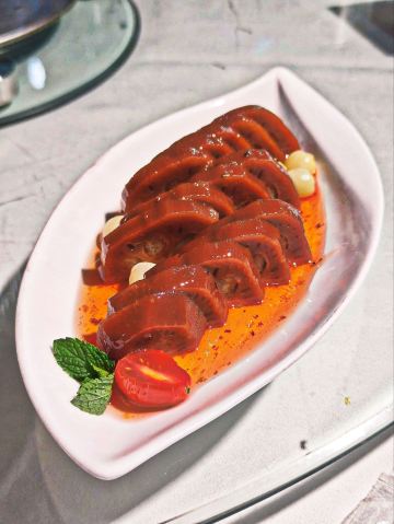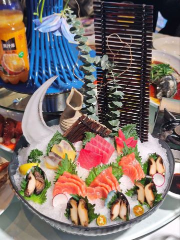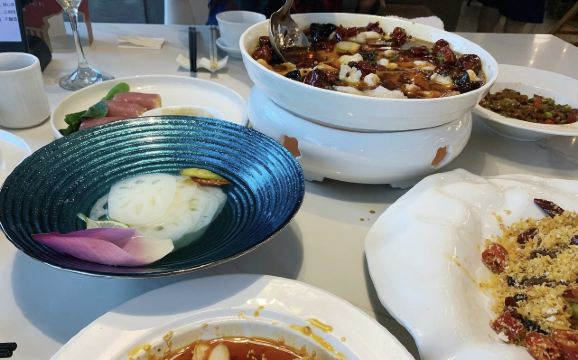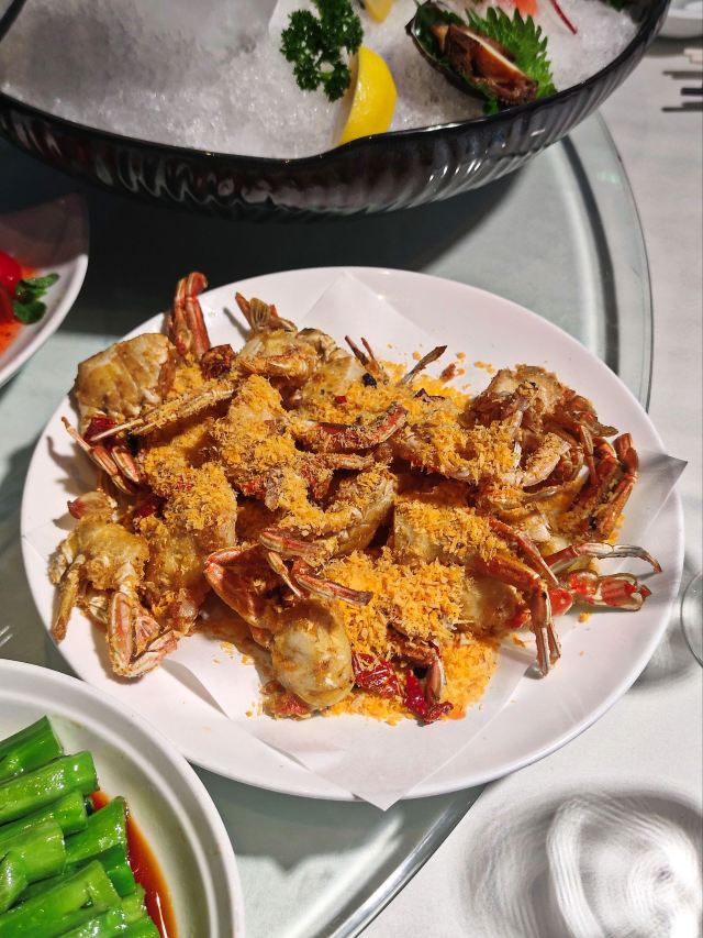这是我第一次来汉口三阳路的湖锦酒楼,之前也去过几次其它地方的分店,整体印象还是挺不错的。它家菜品的味道还比较稳定,几个招牌菜像“辣的跳”都是百吃不厌的。 这次选择了在海洋厅就餐,整个厅都是满满的蓝色元素,就餐氛围还挺有感觉的。它家的环境整体偏安静,比较适合商务宴请或家庭聚餐,里面的布局也比较有想法。 刺身拼盘基本上是我每次必点的,很喜欢三文鱼的那种鲜嫩感。黄陂三合的圆子很厚实,连吃几个就感觉很撑了。彩椒雪花牛肉粒很有嚼劲,避风塘梭子蟹外酥里嫩多汁。