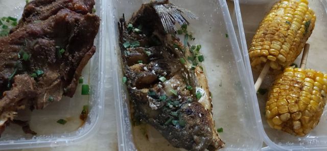 昨天晚上点了一份外卖,二胖家的烧烤,有烤鲫鱼,烤鸡排,烤鸡架,外加烤肉筋和肉串,没有放辣椒,味道还是非常棒的,分量也很足,喝点小酒配烧烤,挺好。