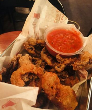 切达牛肉培根汉堡,非常喜欢,是套餐,分量超级足的汉堡,搭配酥脆热乎的粗薯条,超级赞。墨西哥玉米片,薄脆的口感,搭配墨西哥酱汁,清新不油腻,当佐酒调料吃很不错。啤酒口感都不错,还行。