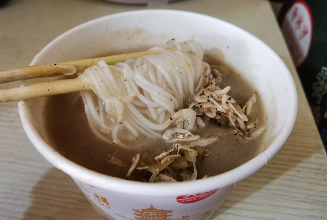 汪记鲜鱼糊汤粉是这附近最受欢迎的,这里营业时间只到下午13:30分,要吃的还是要早来哟。鲜鱼糊汤粉配油条都是标配,一碗小的鲜鱼糊汤粉6元,小菜自己加,可以加一些虾皮和葱花,汤是粘稠的,细细的米线,带有少许的胡椒味。