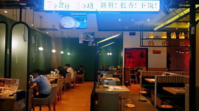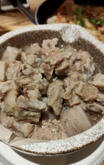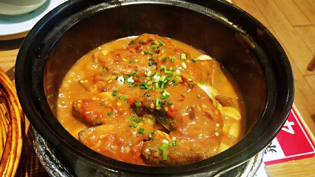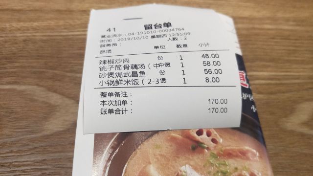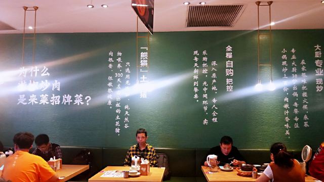 店名:来莱·铫子煨藕(创意城店) 地址:洪山区珞喻路路银泰创意城9楼 交通:地铁2号线到街道口站C口出 营业时间:上午11:00—晚上21:00 和同学两个人一起共点了三份店里的招牌推荐菜品。分别是铫子煨藕汤(中煲)、辣椒炒肉、砂煲焗武昌鱼,加上小锅鲜米饭,两个人总共花费170元。 菜品体验: 1【铫子筒骨藕汤】 店里的招牌必点,也是网友推荐人数最多的菜品。藕是选自洪湖湿地保护区青泥九孔藕,放入筒子骨用小火半日煨制,端上来时藕片已煮的酥烂,筒子骨的骨头大肉也丰富,汤汁鲜美浓郁,喝起来味道微微有点甜。 2【辣椒炒肉】 店里的招牌推荐菜品。猪肉选自纯天然喂养的宁乡花猪,炒肉吃起来香嫩入味,青辣椒虽有点辣不过也是很脆了挺下饭的。 3【砂煲焗武昌鱼】 这是本人点的一份菜品。武昌鱼作为当地特色菜品也是必点的,以前吃的多是清蒸武昌鱼,这次在这家吃了砂煲焗武昌鱼感觉也是很好吃的。鱼肉鲜嫩,酱汁浓厚,甜中带辣,是我很喜欢的味道。 4【小锅鲜米饭】 端上来一个电饭煲,是现煲现煮的饭,口感佳。 环境:店里环境不错,有包厢、卡座、沙发位,就餐环境舒适。该店就在创意城扶梯口旁边,位置显眼好找,商场中间还竖起了该店的横幅。 服务:和同学(学弟)一起来吃的,同学负责招待。边吃边聊,感觉挺好的。最后同学用支付宝扫码结账的。 这是武汉一家各方面都不错的湖北菜店,值得推荐!