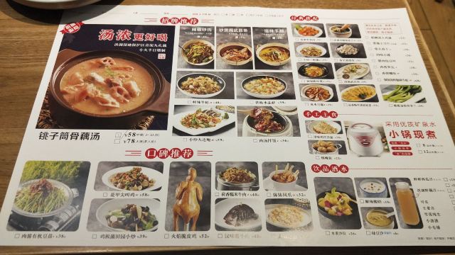 铫子筒骨煨藕汤,丹江口大鱼头,渔家浇汁鲜鲈鱼,脆皮发财鸡,沔阳杂粮蒸排骨,来菜荆楚牛三鲜,皮蛋青椒擂茄子,辣椒炒肉,小锅现煮米饭,排骨藕汤,铁锅水晶虾,泉水豆腐,三镇干煸藕丝 ,蒜蓉粉丝娃娃菜,香煎鲫鱼,排骨莲藕汤