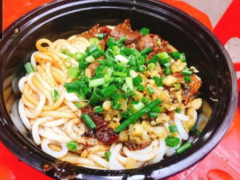 当地非常有名的粉面馆,甚至有本地人在这从小吃到大,环境简约,但是非常明亮干净。麻辣牛肉拌粉面算得上是这里的招牌,店内的食客基本上是人手一碗,里面的牛肉块卤得十分入味,也很软烂。干腌牛肉丝拌面也非常有人气。而且这里24小时营业,随时都能满足大家。