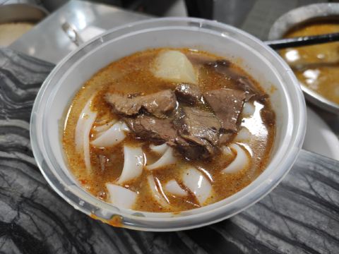 当地非常有名的粉面馆,甚至有本地人在这从小吃到大,环境简约,但是非常明亮干净。麻辣牛肉拌粉面算得上是这里的招牌,店内的食客基本上是人手一碗,里面的牛肉块卤得十分入味,也很软烂。干腌牛肉丝拌面也非常有人气。而且这里24小时营业,随时都能满足大家。